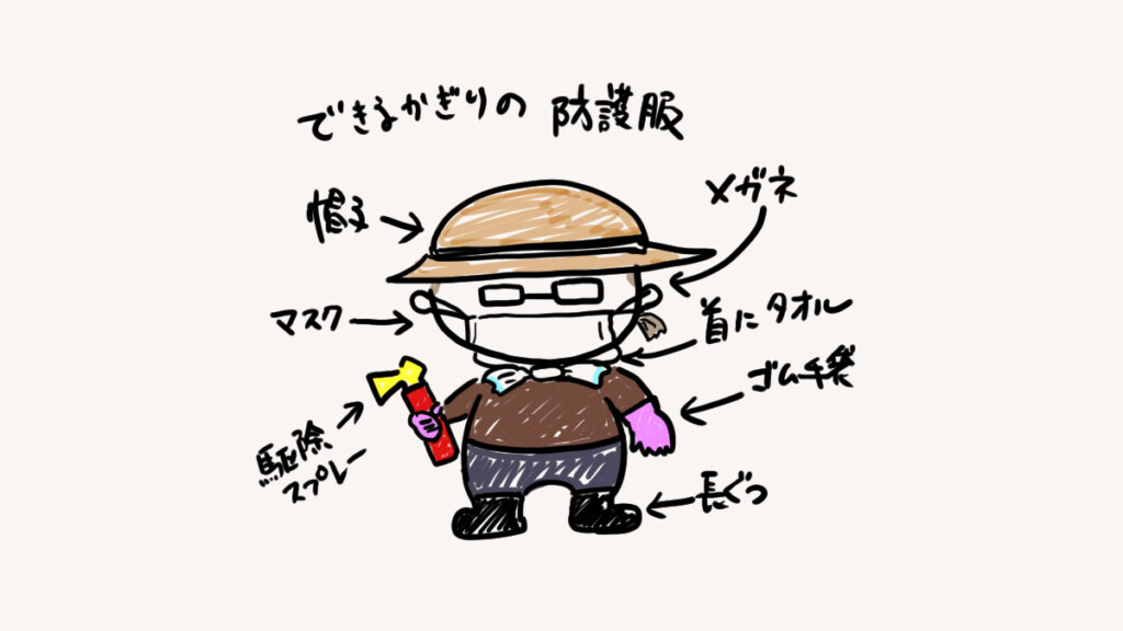 肌の露出をできるだけなくすこと、そして黒っぽい服は避けることが大事と調べた時に書いてありました。