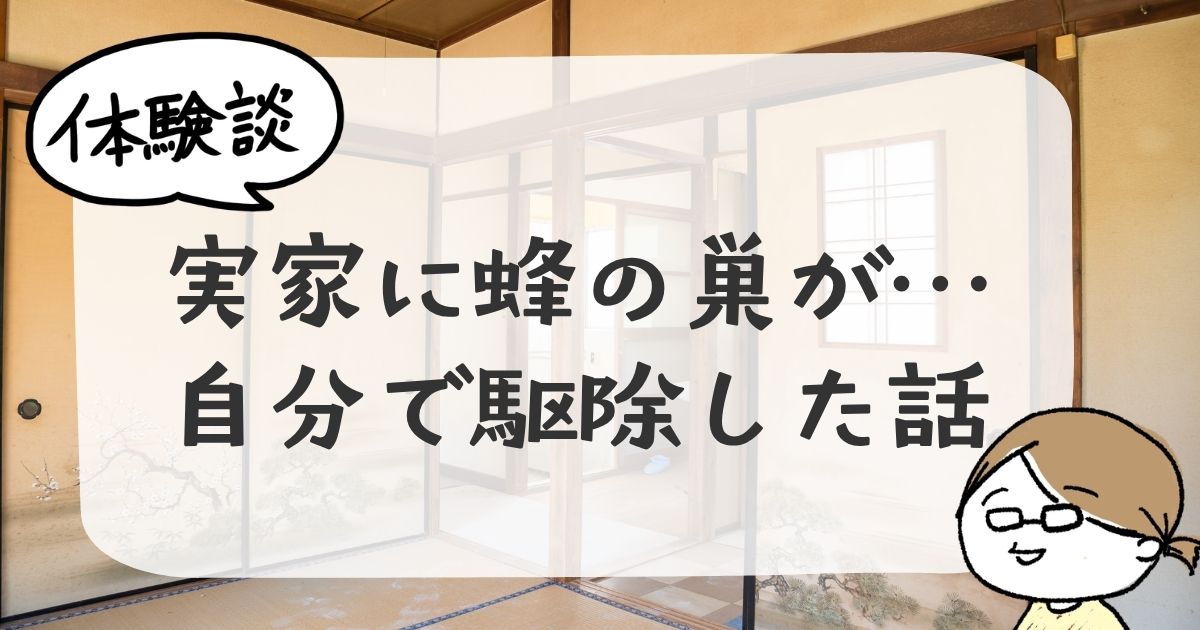 今日は、実家にできた蜂の巣を自分で駆除した時のお話をしようと思います。虫が大の苦手な40代独身女が、ビクビクしながらもなんとかやり遂げた体験談です。同じように「実家の蜂どうしよう…」と悩んでいる方の参考に少しでもなれば嬉しいです。